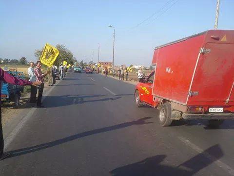 سلسلة بشرية بطريق “دمنهور- حوش عيسي” رفضًا للانقلاب