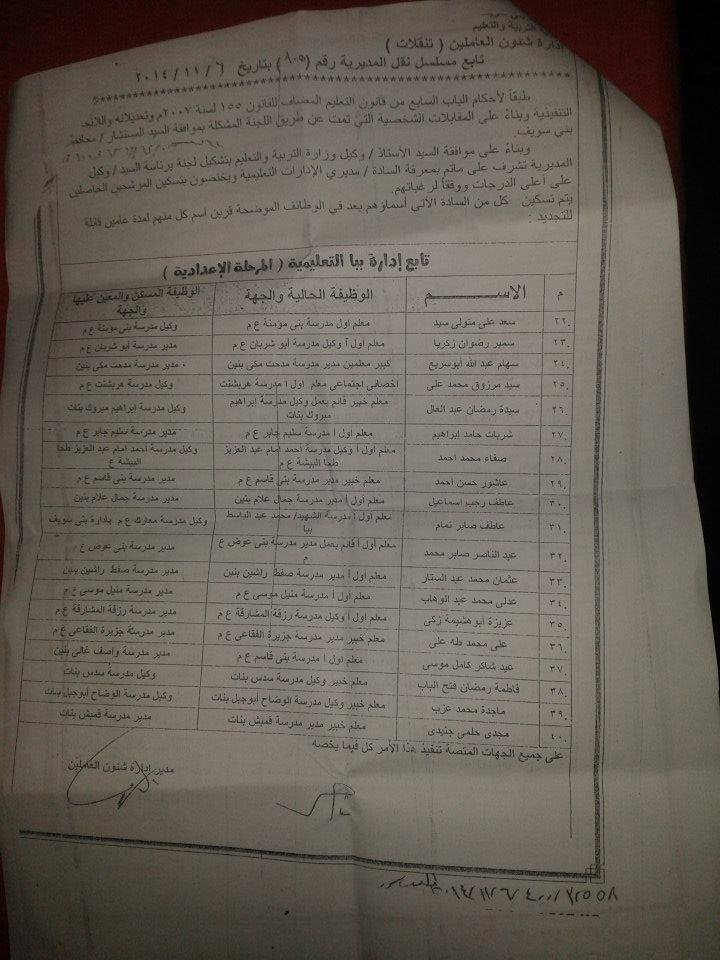 وأكدت بعض المصارد أن هذه الاقصاءات تأتى بتوجيهات من "هاني فوزى عباس" أمين شرطة بالأمن الوطني ومسئول ملف التربية والتعليم بإدراة ببا التعليمية وهو مقيم بقرية بني قاسم التابعة للمركز، حيث يتم التنسيق مع المدعو حسن محمود محمد وكيل التعليم الأعدادى بأدارة ببا التعليمية.