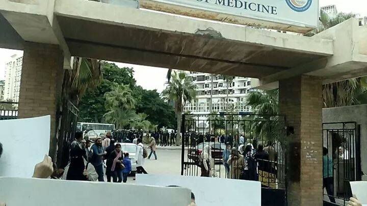 فيما نظم طلاب المجمع الطبي تظاهرة طافت أرجاء المجمع، مرددين هتافات مناهضة للانقلاب العسكري، حملوا خلالها لافتات تندد بالقمع الأمني لإدارة الجامعة، وطالبوا بعودة الطلاب المفصولين إلى دراستهم.