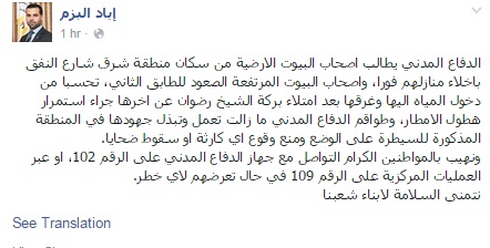 وأهاب البزم بالمواطنين، التواصل مع جهاز الدفاع المدني على الرقم 102، أو عبر العمليات المركزية على الرقم 109 في حال تعرضهم لأي خطر.