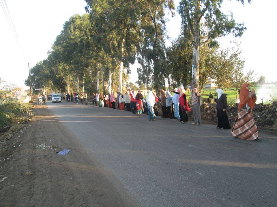 نظم التحالف الوطني لدعم الشرعية ورفض الانقلاب في الغربية، سلسلة بشرية في قرية "ميت حواي" بمركز "السنطة"، حمل...