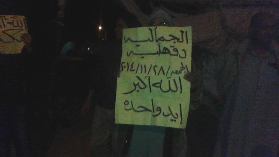 خرجت عدة مسيرات ليلية في محافظة الدقهلية، استكمالًا للحراك الثوري في انتفاضة الشباب المسلم، واستجابةً لدعوة التحالف الوطني لدعم الشرعية ورفض الانقلاب في جمعة "الله أكبر .. إيد واحدة".