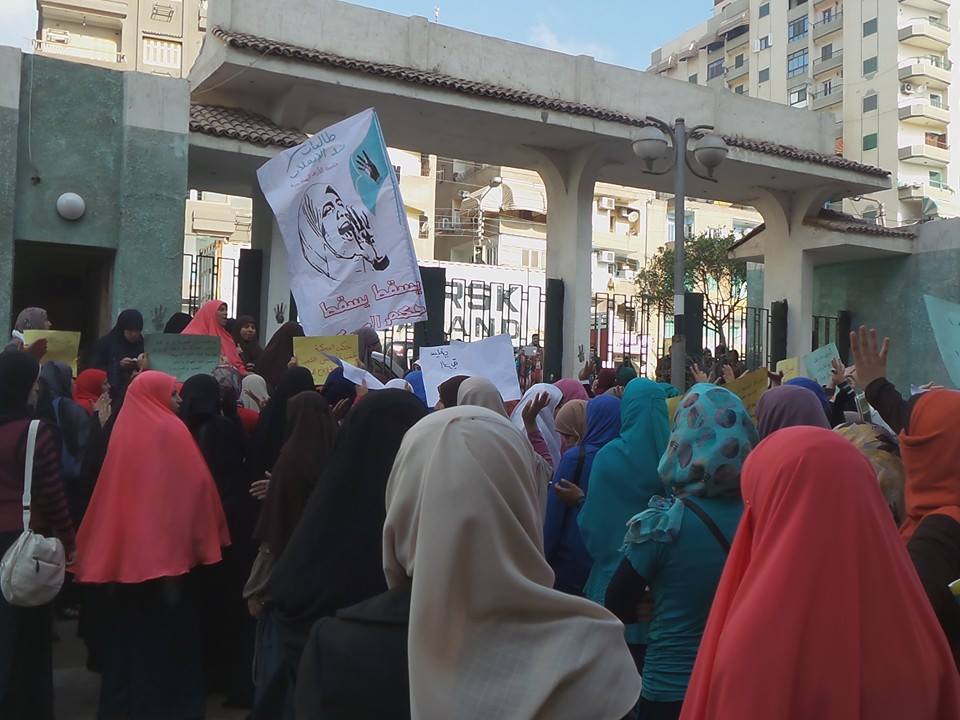 حيث تجمعت الطالبات صباح اليوم في سلسلة بشرية في ساحة الكلية، مرددين هتافات منددة بقضاء الانقلاب، فيما تحركت الطالبات في مسيرة جابت أرجاء الكلية وجابت كذلك مباني الكلية الرئيسة.
