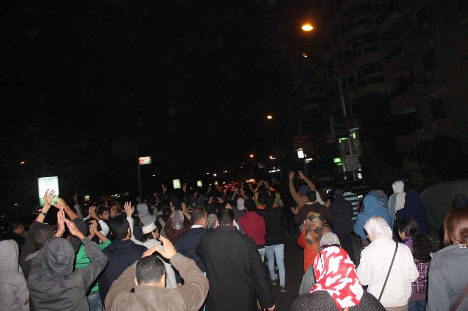 خرج رافضو الانقلاب في "مدينة نصر"، و"مصر الجديدة"، في تظاهرة ليلية، انطلقت من أمام عمر أفندي بميدان الحجاز، تنديدًا بحكم العسكر، حمل المشاركون فيها شارات رابعة، كما رددوا هتافات مطالبة بمحاكمة قتله الثوار، والقصاص لدماء الشهداء.