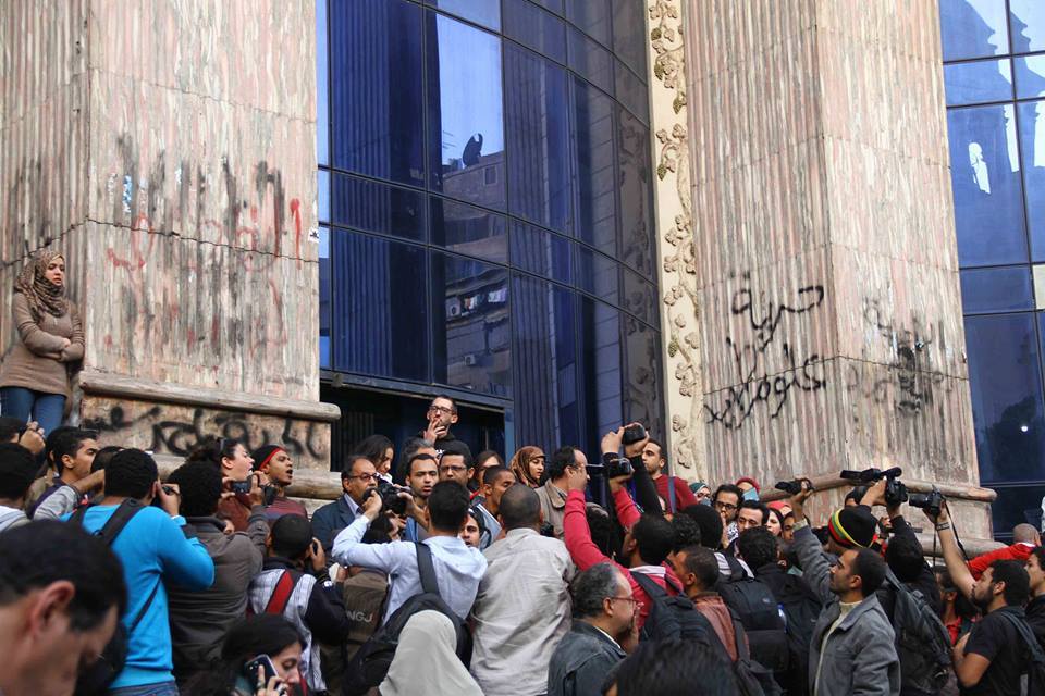 نظم عدد من الصحفيين، وقفة أمام نقابة الصحفيين، تلبيةً لدعوة جبهة الدفاع عن حرية الصحفيين، وتنديدًا ببراءة المخلوع مبارك، ردد المشاركون هتافات منددة بقائد الانقلاب، وأخرى مناوئة لمبارك ورموز نظامه، مطالبين بمحاكمتهم محاكمة عادلة.