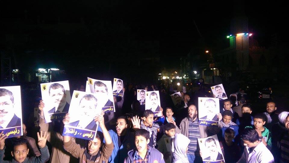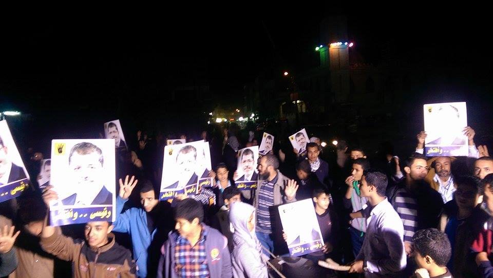 هذا وشهدت مدينة "السادات" خروج 3 مسيرات ليلية، حيث انطلقت المسيرة الأولي بقرية "الخطاطبة"، حمل المشاركون خلالها شارات رابعة، وصور الرئيس محمد مرسي، كما نددوا ببراءة المخلوع مبارك، فيما طالبوا بعودة الشرعية الدستورية.
