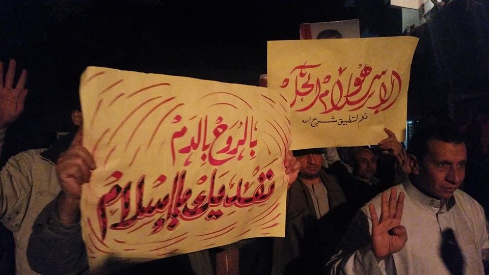هذا ونظمت حركة "شباب ضد الانقلاب" في قرية "ميت حمل" التابعة لمركز "بلبيس"، مسيرة طافت شوارع المدينة، منددين ببراءة المخلوع مبارك، ومطالبين بمحاكمة قتلة الثوار.
