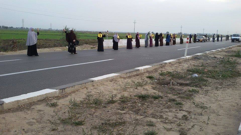 وفي السياق ذاته، نظمت حركة "نساء ضد الانقلاب" بالتنسيق مع حركة "شباب ضد الانقلاب"، سلسلة بشرية ليلية بقرية الحوتة، علي الطريق الزراعي، حمل فيها المشاركون لافتات تندد بالأوضاع المعيشية المتردية، ولاقت ترحيبًا واسعًا من المارة وأصحاب السيارات.