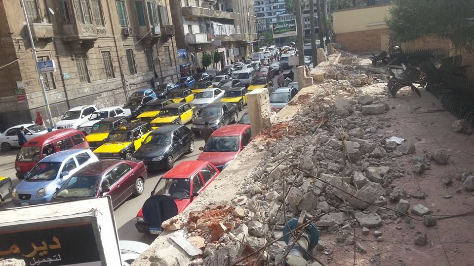 تفاجيء طلاب المجمع الطبى بجامعة الإسكندرية، بإزالة وهدم الجزء العلوي من سور كلية الطب البشري المطل على شارع شامبليون، الذى يصل بين ميدان الخرطوم والكورنيش وذلك لزيادة طول السور.
