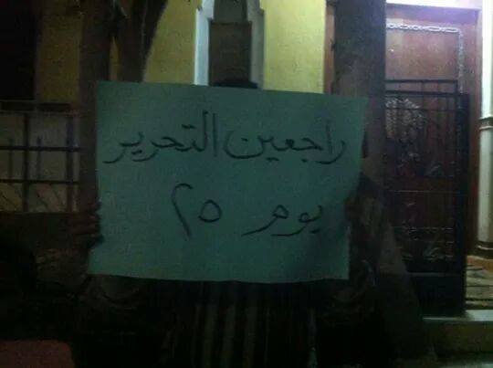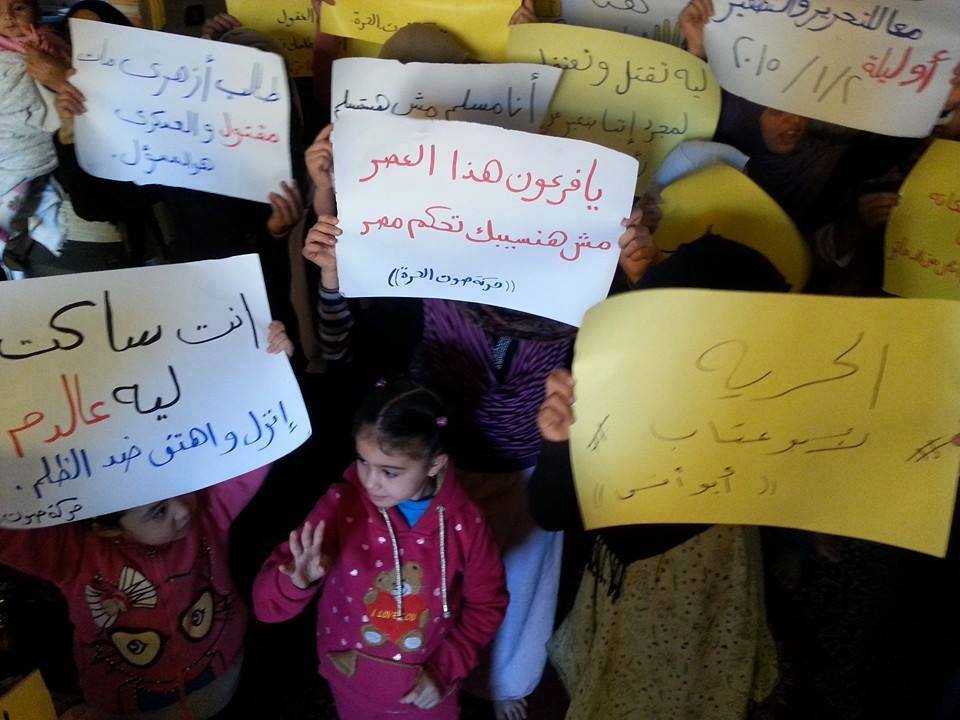 ونظمت كذلك حركة صوت الحرة وقفة مناهضة للانقلاب العسكري في قرية "أوليلية"، رفعن خلالها شارات رابعة، ولافتات تطالب بالإفراج الفوري عن ذويهم المعتقلين في سجون العسكر.