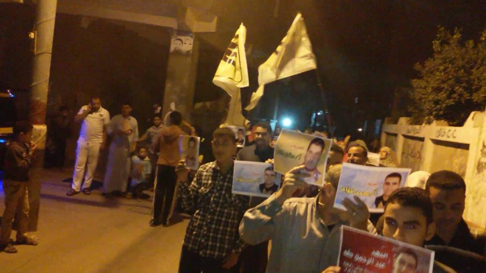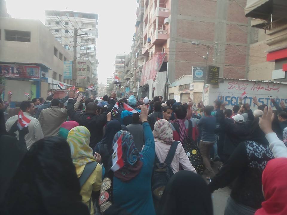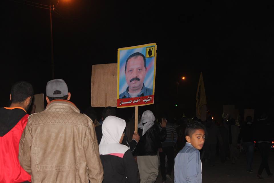ونظم الأهالي مسيرة بالبستان الجديد، قبيل المغرب، حملوا فيها شارات رابعة، وأعلام مصر، كما رددوا هتافات تطالب برحيل حكم العسكر، وأخرى تطالب بوقف الانتهاكات الممارسة بحق المعتقلين.