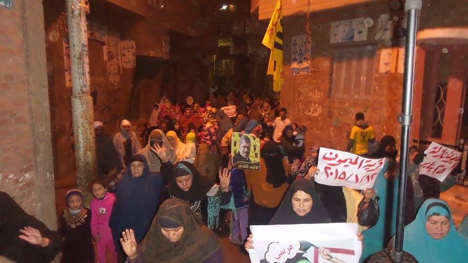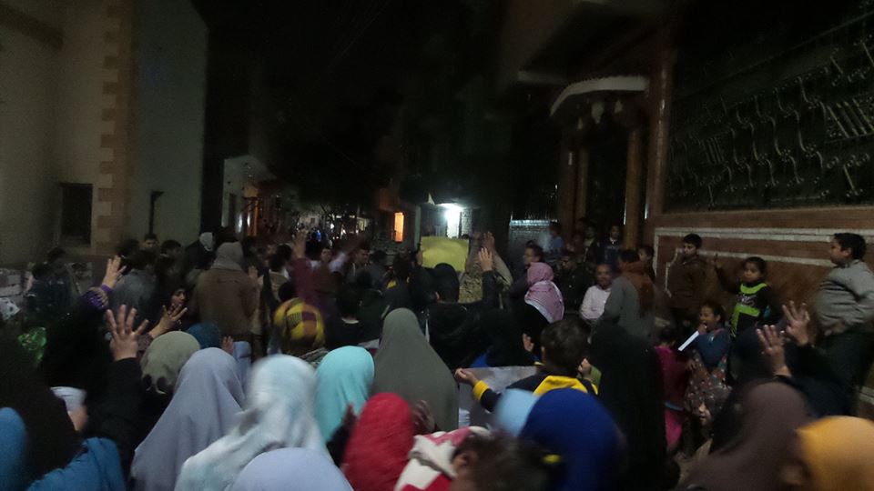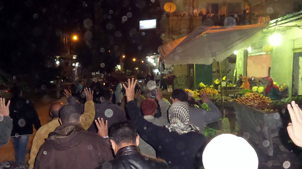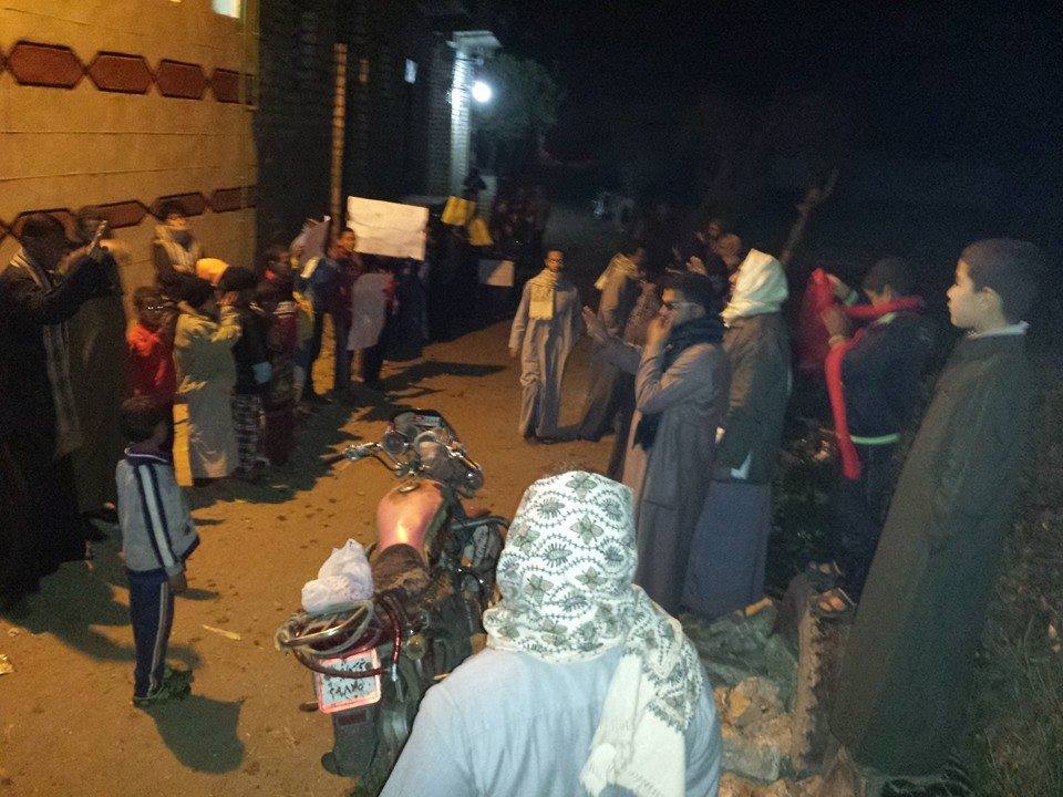 وفي قرية "بني حدير" قام الأهالي بتنظيم وقفة أمام مسجد النور، نددوا فيها بحكم العسكر، كما دعوا للتظاهر في الذكرى الرابعة للثورة، وسط هتافات تنادي بالحرية والكرامة.