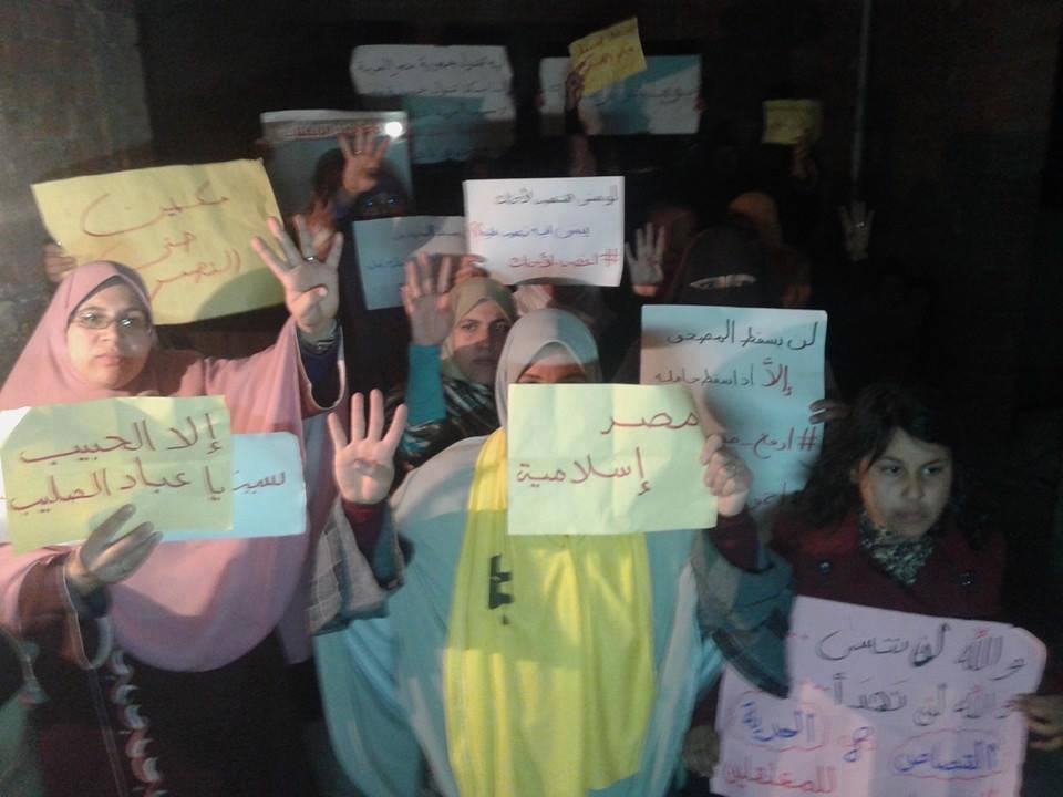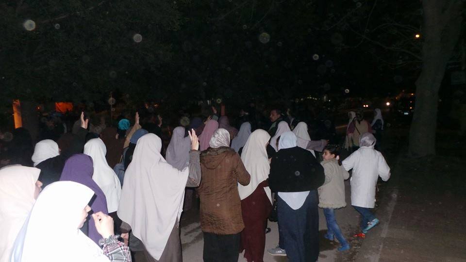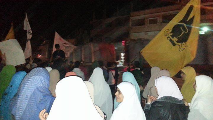 وفي "المنصورة"، نظم التحالف الوطني لدعم الشرعية مسيرة خرجت من تقسيم سامية الجمل، رفع المشاركون فيها شارات رابعة، ولافتات تندد باعتقال الفتيات، وتحويل 81 من مواطني الدقهلية للمحاكمات العسكرية.
