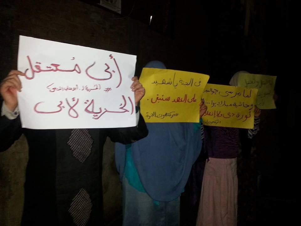 كما نظمت حركة "صوت الحرة" بقرية ‫"أبوليلة"‬ سلسلة بشرية، رفعت المشاركات خلالها صورًا لذويهم المعتقلين، حيث طالبن بالإفراج عنهن، ورددن كذلك هتافات مناوئة لقضاء الانقلاب، وأخرى تطالب بالتطهير.