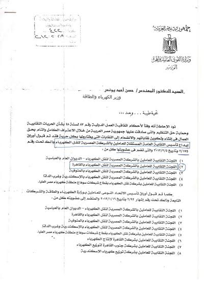 بالمستندات.. نقابة نقل الكهرباء المستقلة شرعية