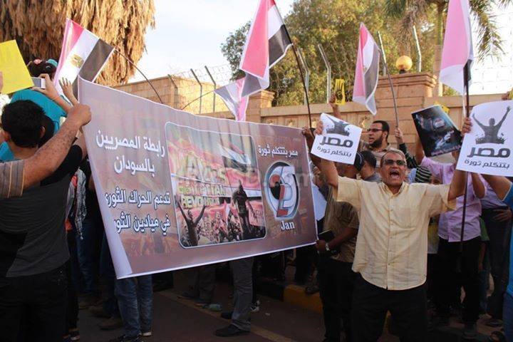 وفي السودان خرجت الجالية المصرية في تظاهرة حاشدة رافعين أعلام مصر وشارات رابعة العدوية ومطالبين بإٍسقاط حكم العسكر والإفراج عن المعتقلين بالسجون.
