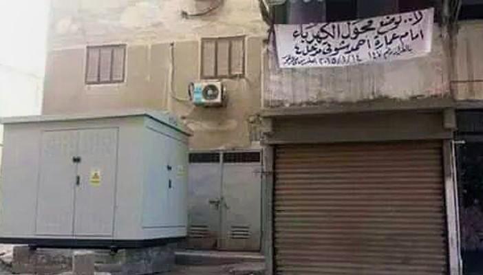 ووضع ،شوقي، لافتةً على منزله مطالبًا الحكومة بإزالة محول الكهرباء، قائلا “لا لوضع محول الكهرباء أمام العمارة” .