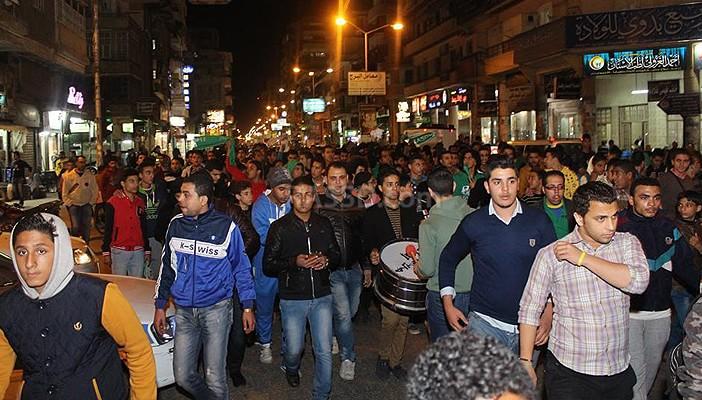 بالصور.. تظاهرة لمشجي النادي المصري تجوب شوارع بورسعيد