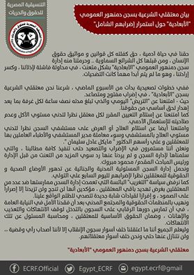 "بيان معتقلي الشرعية بسجن دمنهور العمومي "الأبعادية" حول استمرار إضرابهم الشامل..