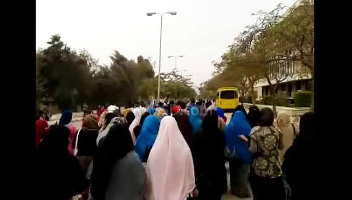 وطالب المشاركون فيها بإسقاط حكم العسكر والإفراج عن زملائهم المعتقلين كما داهمت قوات أمن الانقلاب الجامعة بعد انتهاء المسيرة الطلابية.