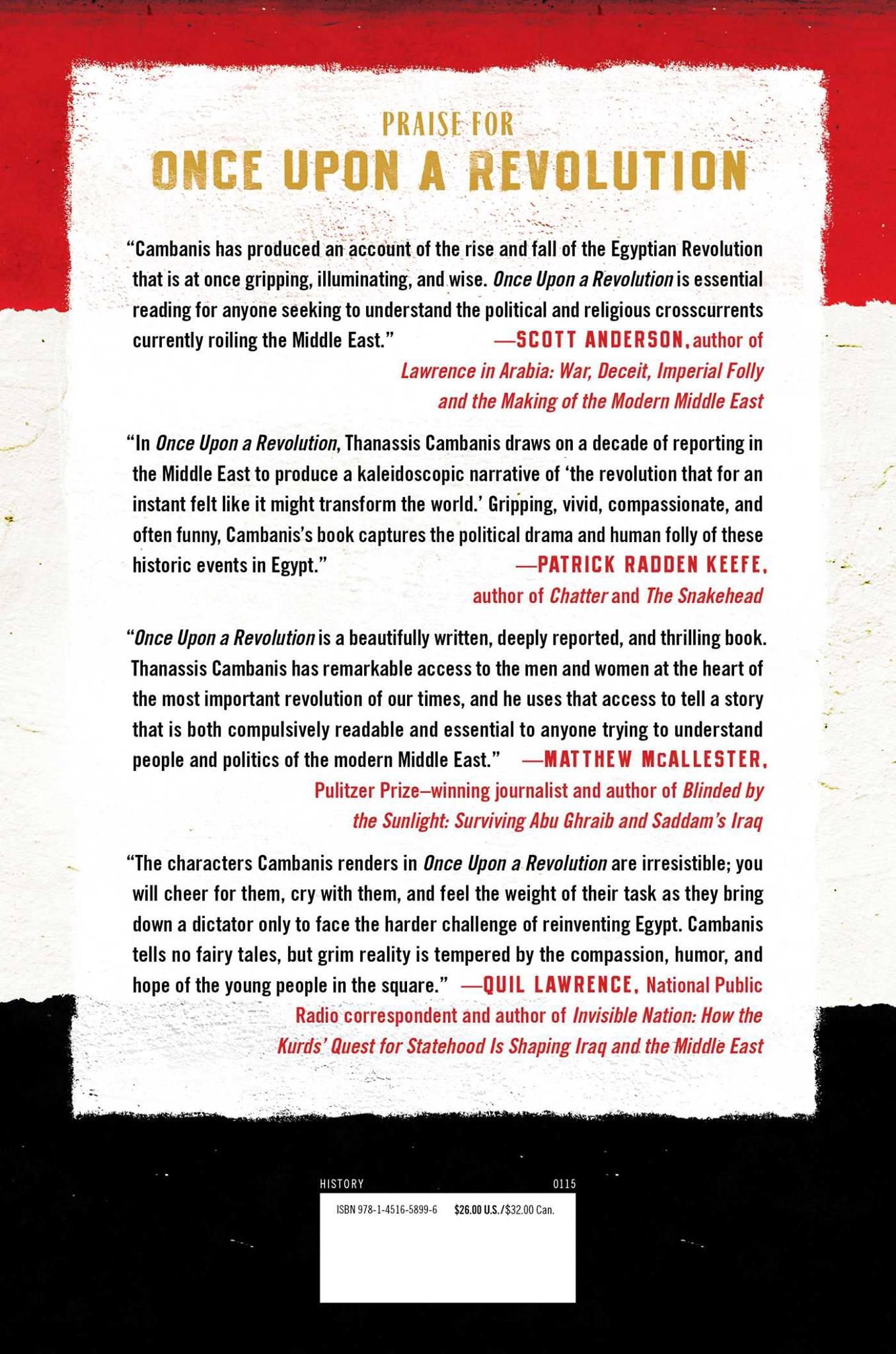 بعد مرور أربع سنوات على انطلاق ثورة يناير 2011، عادت مصر إلى المربع الأول إبّان عهد مبارك، عقب تحطم الآمال بتأسيس نظام سياسي جديد، حيث استطاع النظام القديم العودة إلى لسلطة، في ظل فشل الثوار في الالتفاف حول قائد واحد، ولا تزال كل المظالم الأساسية موجودة، ولا يوجد دليل على أن السيسي سيستطيع حلها.. هذا هو حال مصر في الوقت الراهن، كما صوَّره الكاتب ثاناسيس كامبانيس في كتابه "كانت هناك ثورة .. قصة مصرية"، الذي صدر عن دار "سايمون اند شوستر" في 274 صفحة.