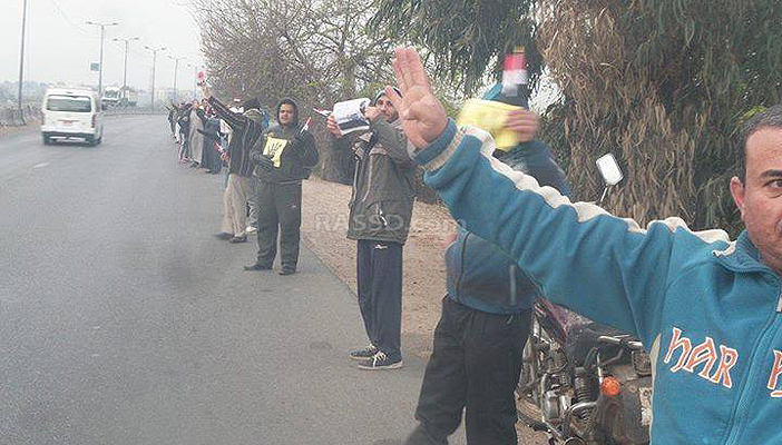 نظم أهالي فاقوس سلاسل بشرية علي طريق فاقوس- الإسماعيلية، تندد بمقتل إثنين من شباب الإبراهيمية علي أيدي قوات الأمن، ردد المشاركون خلالها هتافات تؤكد علي الصمود والثبات في الميادين رغم أحكام الإعدام والاعتقالات والقتل، حتى كسر الانقلاب وعودة الشرعية.