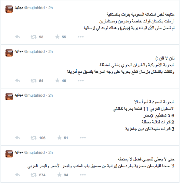 نفى مجتهد السعودية (المغرّد المعروف) صحة الخبر الذي أفاد بقيام سفن مصرية، بطرد أخرى إيرانية من مضيق باب المندب المطلة عليه اليمن.