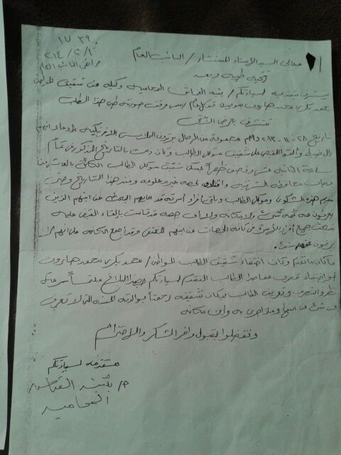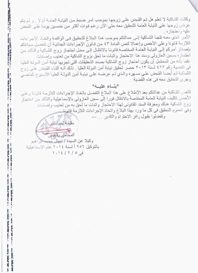 4- شكوى مقدمة إلى النائب العام حول اختفاء المتهم الثاني في القضية قبل وقوع الجرائم محل المحاكمة: