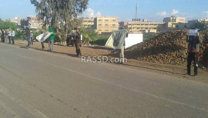 نظم أهالي قرية طناح بمركز المنصورة، سلسلة بشرية منددة بقضاء العسكر، على طريق “ميت فارس – المنصورة” الزراعي، رفعوا خلالها شارات رابعة وأعلام مصر ولافتات تندد بمجازر الإعدامات.