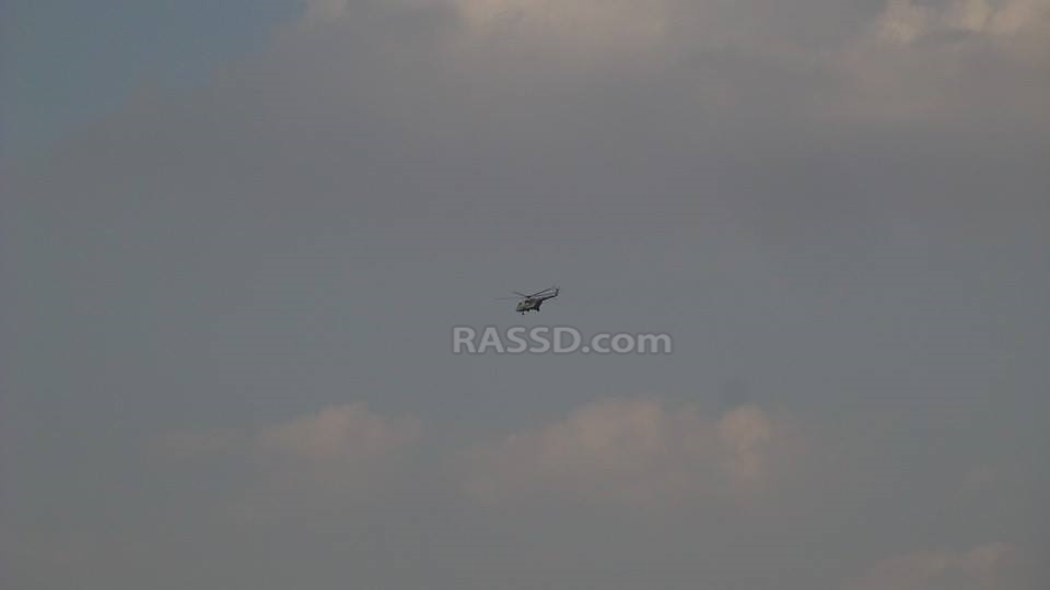 تحوم طائرات مروحية في سماء قرية الميمون ببني سويف، وسط عرض عسكري من قبل قوات الأمن داخل القرية، بعد وصول التعزيزات العسكرية إليها عصر اليوم.