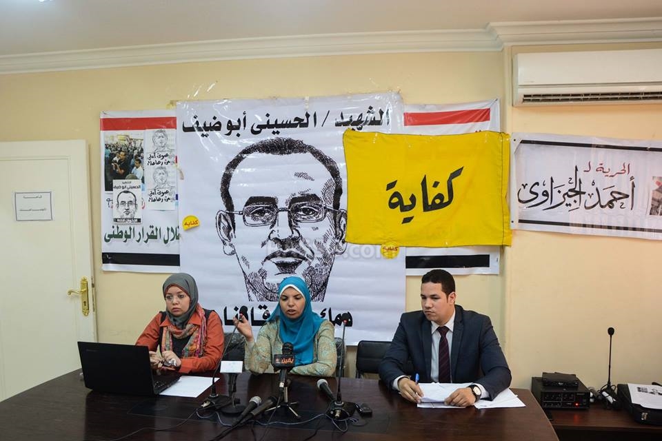 نظمت حركة “كفاية”، مؤتمرًا صحفيًا، اليوم الأربعاء، بمقر الحركة الوطنية من أجل التغيير في شارع طلعت حرب بالتحرير، وذلك للمطالبة بإسقاط قانون التظاهر، والإفراج عن المعتقلين في السجون المصرية.