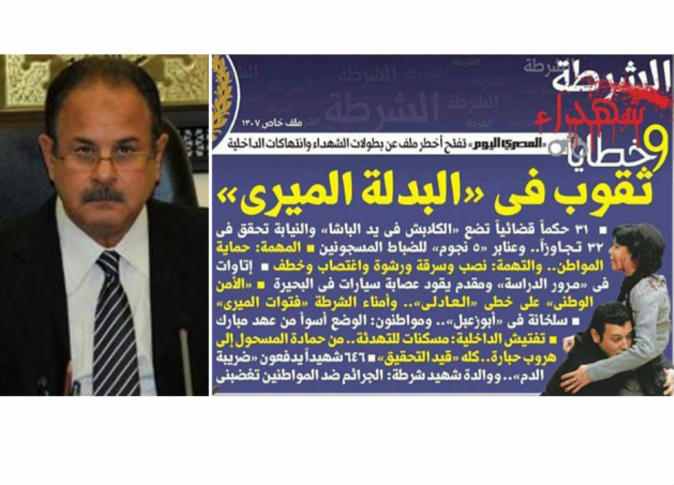 وقالت الصحيفة في ملف احتل ثلاث صفحات كاملة: “ما زال بعض رجال الشرطة يمارسون القمع والتنكيل بالمواطنين، وما زال بعض الضباط يعدّون أنفسهم فوق القانون، وما زالت تجاوزات الشرطة في السجون والأقسام، بدليل مقتل المحامي بقسم شرطة المطرية، جراء التعذيب، ومشاجرة ضابط وصديقه؛ بسبب فتاة داخل ديسكو في الجيزة، وترويع ضابط لسكان عقار بالهرم، وتورط ضابط في قضية تزوير أوراق للسيارات المسروقة، وآخر في تعاطي مواد مخدرة وحيازتها”.