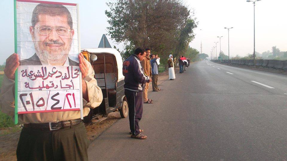 ونظم أهالي مدينة دسوق سلسلة بشرية على طول دسوق كفر الشيخ، منددين بمحاكمة الرئيس مرسي، مقدمين تحية إجلال وتقدير لصموده وجميع المعتقلين في السجون.