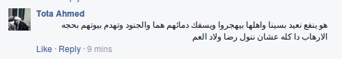 وأضاف تامر أحمد: “هو ينفع نعيد بسينا وأهلها بيهجروا وتُسفك  دماؤهم هما والجنود وتهدم بيوتهم بحجه الإرهاب، دا كله عشان ننول رضا ولاد العم”.