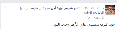 وبسخرية، قال الناشط الحقوقي، هيثم أبو خليل، في منشور له على موقع التواصل الاجتماعي “فيس بوك”- “أخوكم في الله جون كيري ..جاي أعلمكم الإسلام الوسطي الجميل ..!!”، وأضاف”ساخرا”، بعد نشره بعض الصور له “جون كيري بيمسي علي الأزهر وحزب النور.”