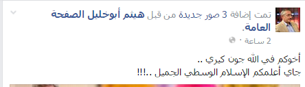 وأضاف- عبر منشور له على موقع التواصل الاجتماعي “فيس بوك”- “خلت المساجد من الممنوعين من الخطابة في العالم الإسلامي، وأنا أحدهم، ليحل محلنا جون كيري! حتى يعلم الناس “الإسلام المعتدل” بعد أن مُنع أمثالنا من تعليمهم الفهم المتطرف للإسلام”.
