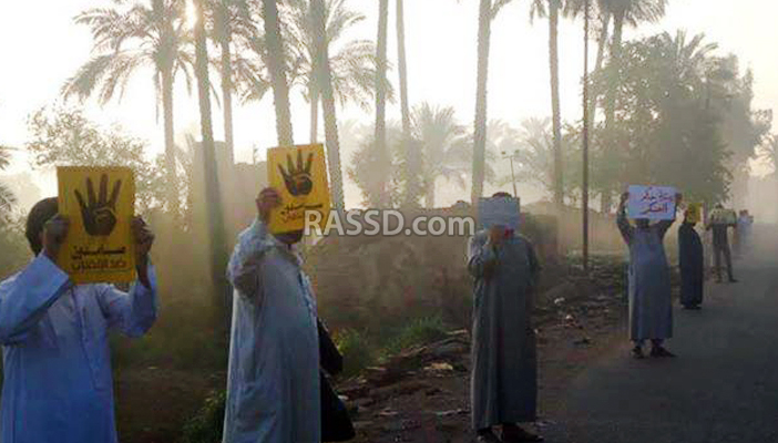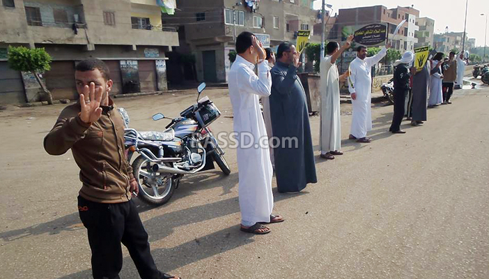 ونظم اهالي الشهداء سلسلة بشرية ضد الانقلاب على طريق الشهداء دراجيل رافعين شارات رابعة