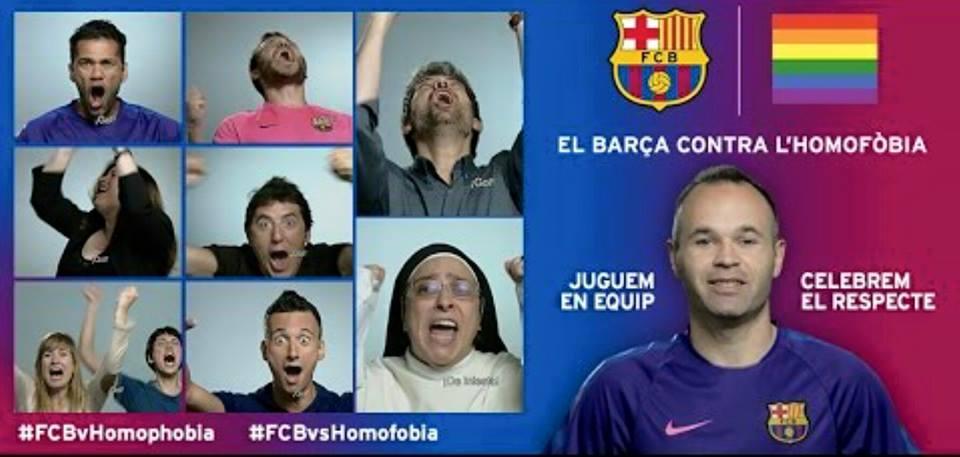 دشن نادي برشلونة الإسباني حملة إعلامية لدعم الشذوذ الجنسي، تحت عنوان “نلعب معا.. نحتفل معاً، نادي برشلونة ضد مناهضي الشذوذ الجنسي” (fcb Barcelona against homophobia)، وذلك عبر وسائل الإعلام التي يمتلكها النادي.