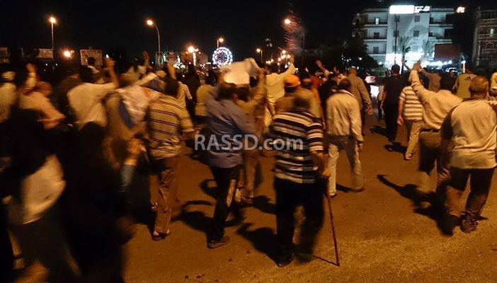 فيما شارك أهالي الحسينية في السلاسل البشرية، التي نظمها تحالف دعم الشرعية قبيل مغرب الأحد علي طريق الحسينية – صان الحجر رفضًا لحكم العسكر.