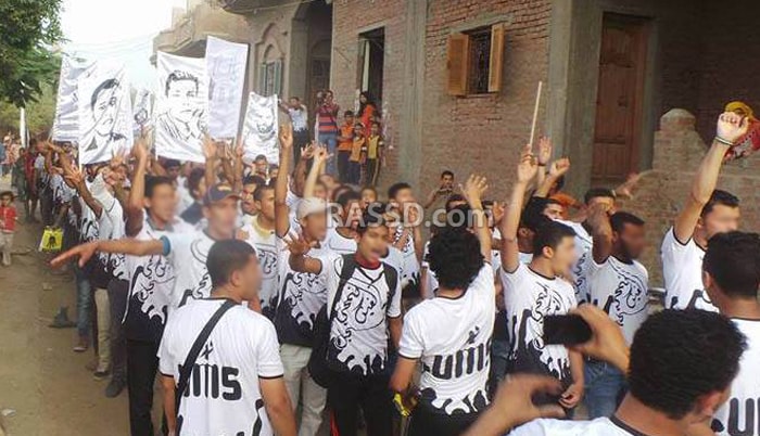 وفي القرية ذاتها، نظمت أيضا سلسلة بشرية، تنديدًا بمقتل السيد الرصد في معسكر الأمن المركزي في بنها بمحافظة القليوبية، مؤكدين استمرارهم في الحراك حتى إسقاط حكم العسكر.