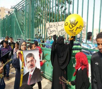 ففي الإسماعيلية ألقت قوات الأمن القبض علي خمس فتيات بسبب حيازتهم بالونات مرسوم عليها علامة رابعة العدوية.