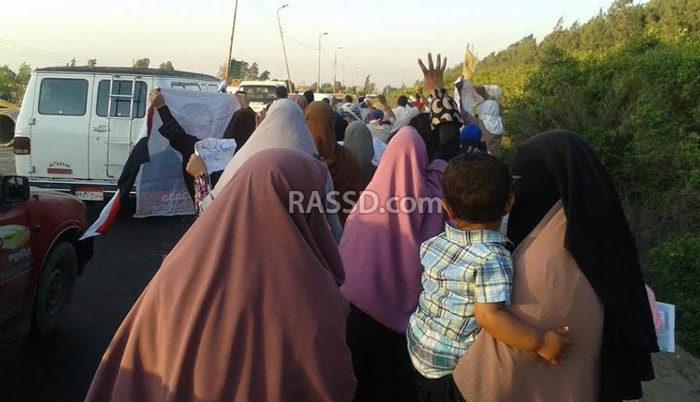 رفع المشاركون أعلام مصر و رايات رابعة و صور الرئيس مرسي ، ولافتات منددة بتجاهل حكومة الانقلاب لمشاكل المزارعين من نقص المياه و ارتفاع اسعار الأسمدة ، صعوبة التسويق.