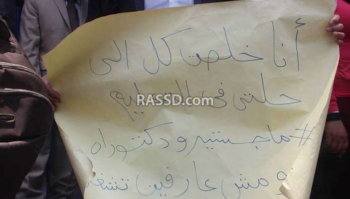 نظم حملة درجة الماجستير والدكتوراه لعام 2015، وقفة احتجاجية على سلالم نقابة الصحفيين، اليوم الإثنين؛ لمطالبة رئيس الوزراء المهندس إبراهيم محلب، بإصدار قرار بتعيينهم.
