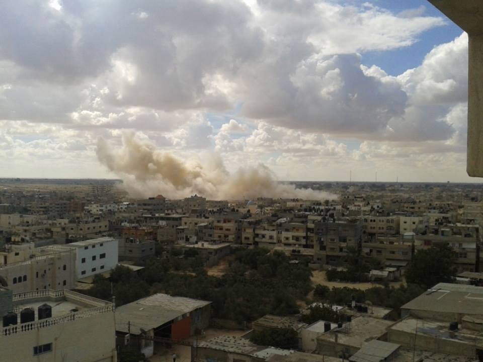 وتُسمع على فترات، أصوات التفجيرات إثر تفجير المنازل المصرية هناك، والتي تهتز على وقعها المنازل الفلسطينية، فيما تضررت العديد منها خاصة المجاورة للحدود.