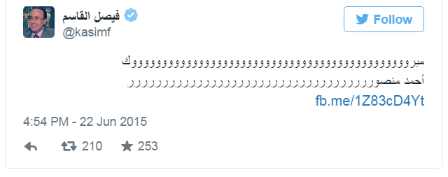 بينما عبر الإعلامي في قناة الجزيرة، فيصل القاسم، عن فرحه بأسلوب لا يخلو من الطرافة، حيث قال “ألف مبروك”، بتكرار الراء والواو أكثر من مرة.