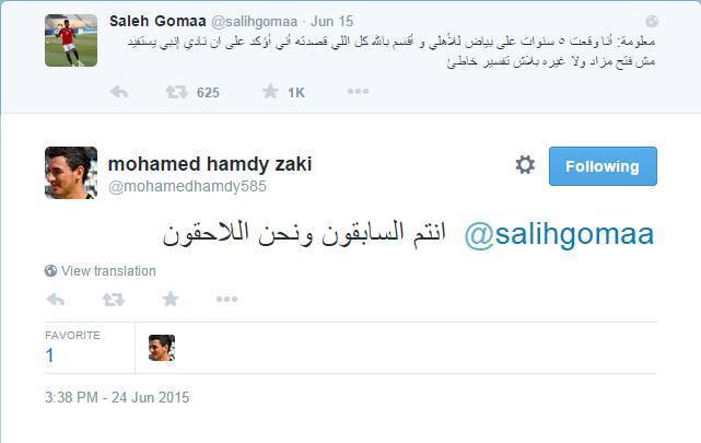 ورد مهاجم الاتحاد على تغريدة صالح جمعة، لاعب فريق إنبي والذي وقَّع على عقود انضمامه للنادي الأهلي، والذي قال فيها: “وقعت للأهلي خمس سنوات”؛ حيث قال جدو: “أنتم السابقون ونحن اللاحقون”.