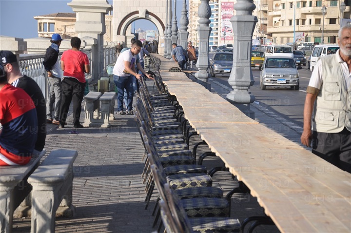 بدأ نحو 800 متطوع من الشباب السكندري، صباح اليوم الجمعة، بتجهيز أطول مائدة في العالم بطول 3 كيلو و400 متر، على كورنيش الإسكندرية، لتسجيلها في موسوعة "جينيس" للأرقام القياسية، لتـبدأ من كوبري ستانلي، وحتى سان ستيفانو.