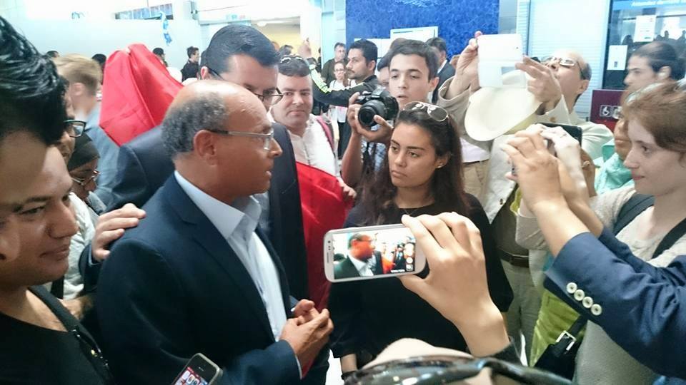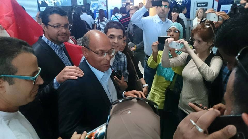بالصور.. استقبال حافل للمرزوقي بمطار باريس.. ونشطاء: الرجال مواقف