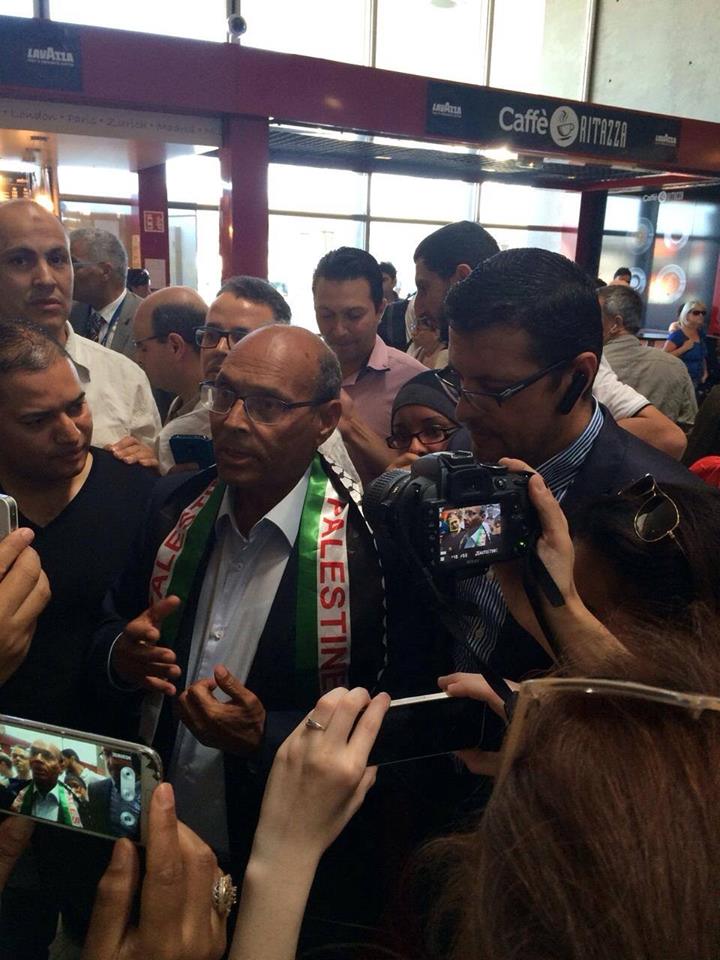 تناول رواد مواقع التواصل الاجتماعي صورا للرئيس السابق لتونس محمد المنصف المرزوقي، أثناء وصوله مطار باريس اليوم الثلاثاء، قادمًا من الأراضي الفلسطينية المحتلة، بعد أن تم احتجازه من قبل الكيان الصهيوني عقب مشاركته في ‫أ‏سطول الحرية 3 لكسر الحصار عن قطاع ‏غزة.