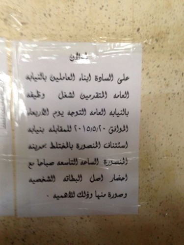 وبحسب الإعلان، فقد طُلب من أبناء العاملين المتقدمين لشغل وظيفة في النيابة التوجه في 20 مايو الماضي إلى نيابة استئناف المنصورة لإجراء المقابلة الشخصية.